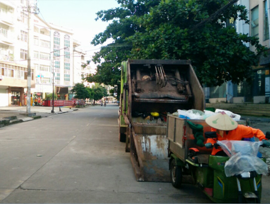 針對東興市國門城市的特點(diǎn),公司采用機(jī)械作業(yè)與人工作業(yè)相結(jié)合的模式。人工作業(yè)方面,城區(qū)每天早上8點(diǎn)鐘前,環(huán)衛(wèi)工人完成大掃,輪班保潔,直到晚上11點(diǎn)鐘。機(jī)械作業(yè)方面,公司采用高壓清洗車對東興市城西區(qū)域路段進(jìn)行清洗作業(yè),采用小掃路車對市區(qū)小街巷進(jìn)行清洗作業(yè),全天候人工與電動三輪車巡回保潔,管理人員用電瓶車進(jìn)行巡檢督查。垃圾清運(yùn)則采用壓縮式收集車巡回收集城區(qū)各路段垃圾,采用5臺勾臂車對城西各區(qū)域100多個(gè)垃圾箱中垃圾進(jìn)行轉(zhuǎn)運(yùn),垃圾壓縮車對全城的垃圾桶中垃圾進(jìn)行循環(huán)收集,保證全城垃圾不落地。新型模式下的環(huán)衛(wèi)作業(yè)有效地提升了東興市國門城市形象及環(huán)衛(wèi)作業(yè)管理水平,受到業(yè)主單位及主管單位好評。