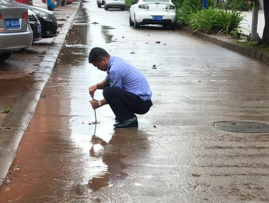 ▲公司管理人員能動性強(qiáng)協(xié)助環(huán)衛(wèi)工人清理堵塞下水道