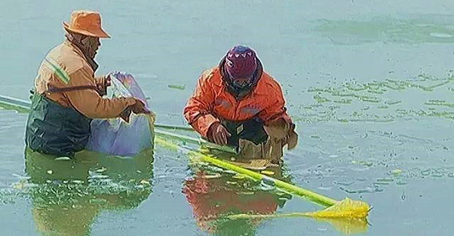 環(huán)衛(wèi)工人清理河道垃圾 還碧水予藍(lán)天